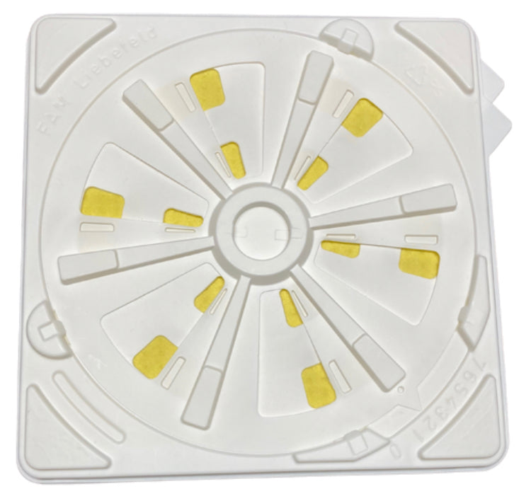 - Lukk dispenseren og lås lokket i alle hjørner og hold dreieskiven lukket for transport