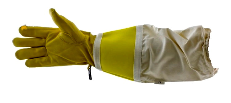 Skinnhansker til birøkt, laget i mykt og slitesterkt skinn og med ekstra forsterking over håndleddet.